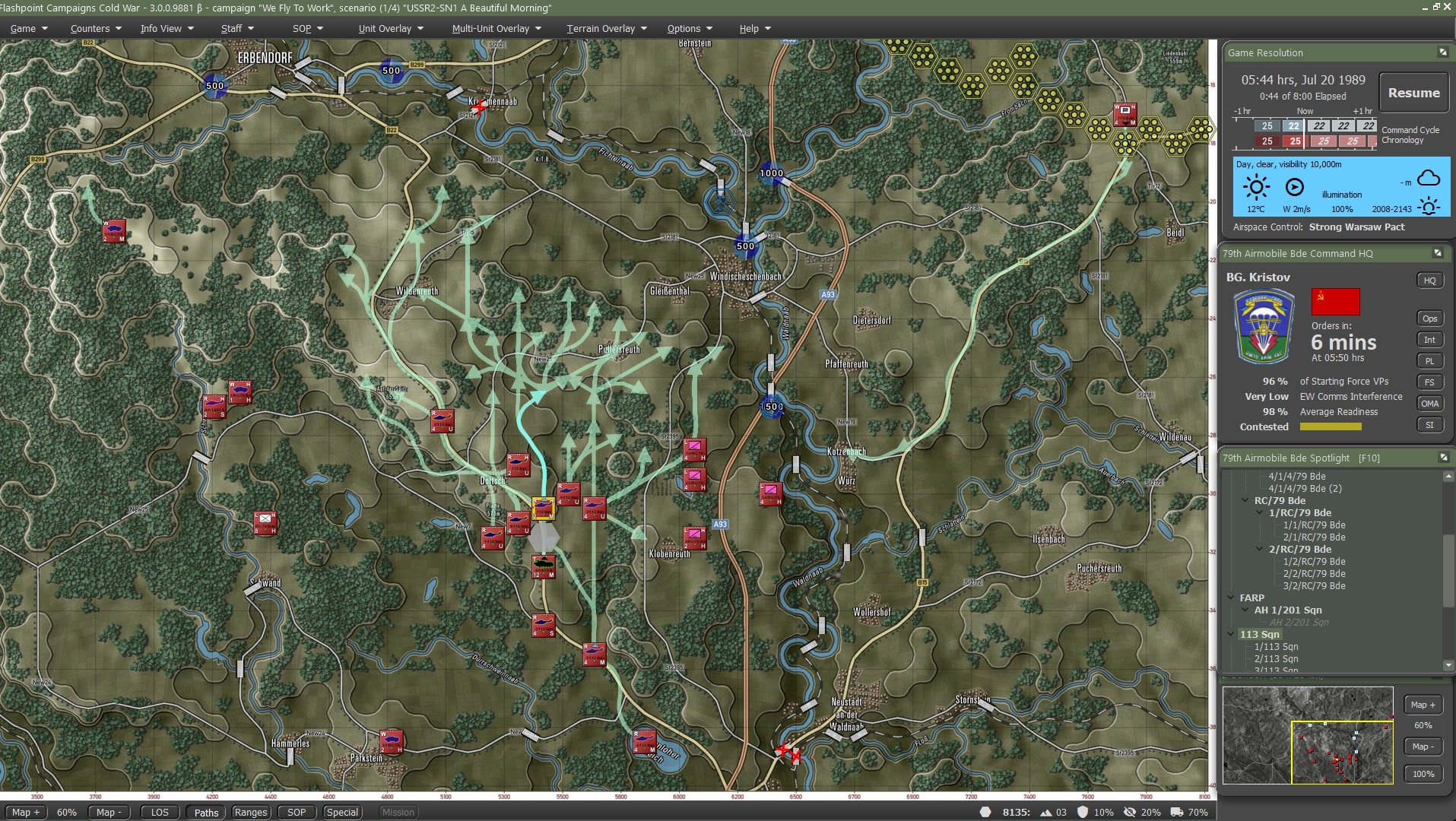Flashpoint Campaigns: Cold War is a grand tactical combat simulation on the Cold War battlefield. As the force Commander, you will plan and then issue orders and Standard Operating Procedures to your battalion, brigade, or regimental forces, shaping the fight by maneuver and your intent. Your forces will engage the enemy in rendered real-world map locations. Each hex is 500m of militarily significant terrain on maps covering 20km x 15km or greater locations across the German area of battle. Each battle can last 4 to 24 hours of in-game time. Your troops will meet their foes at any time of day and in any realistic weather conditions.