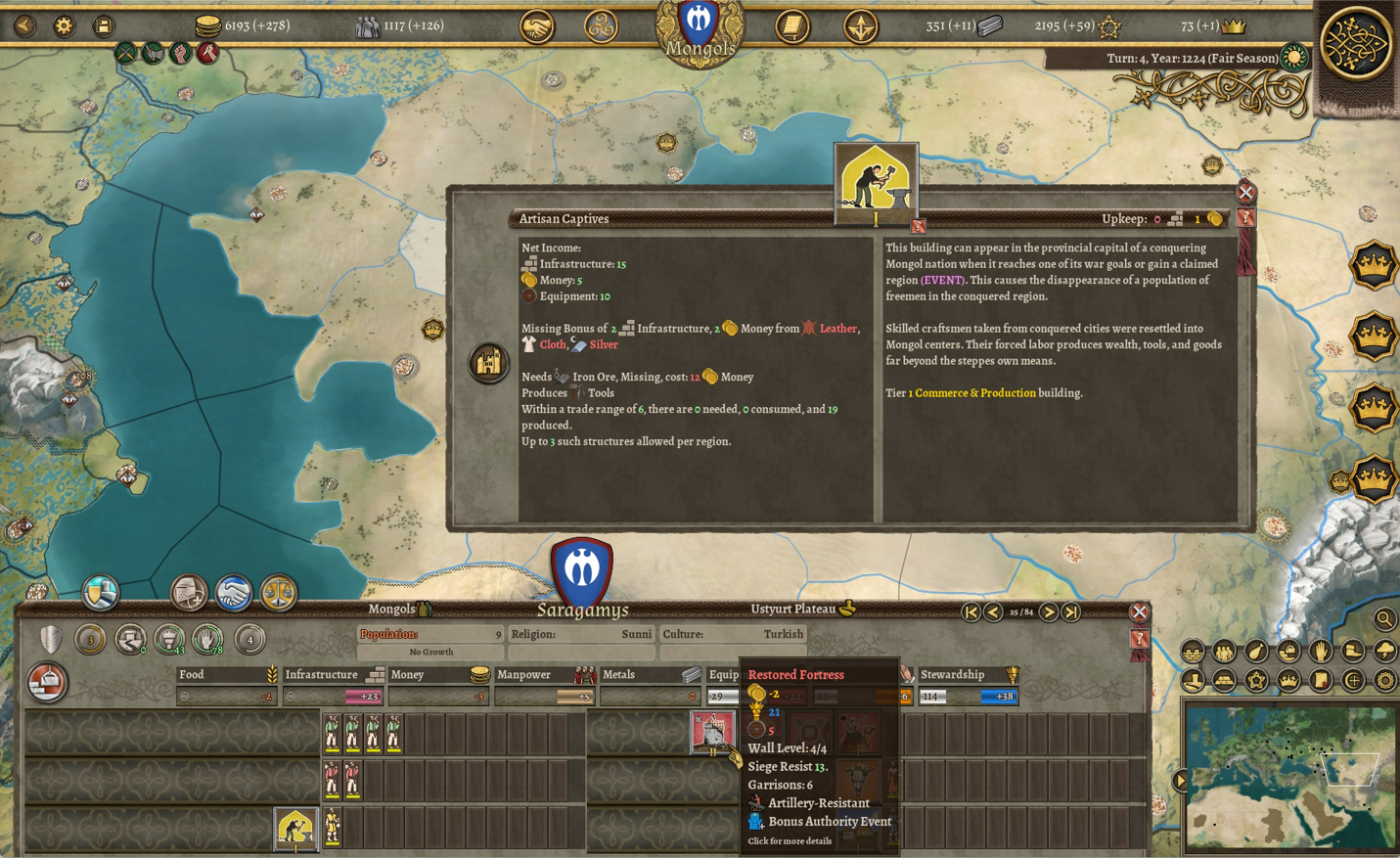 The forced migration of thousands of artisans into strategic cities was one of the Mongols’ trademarks. You will benefit from it as well