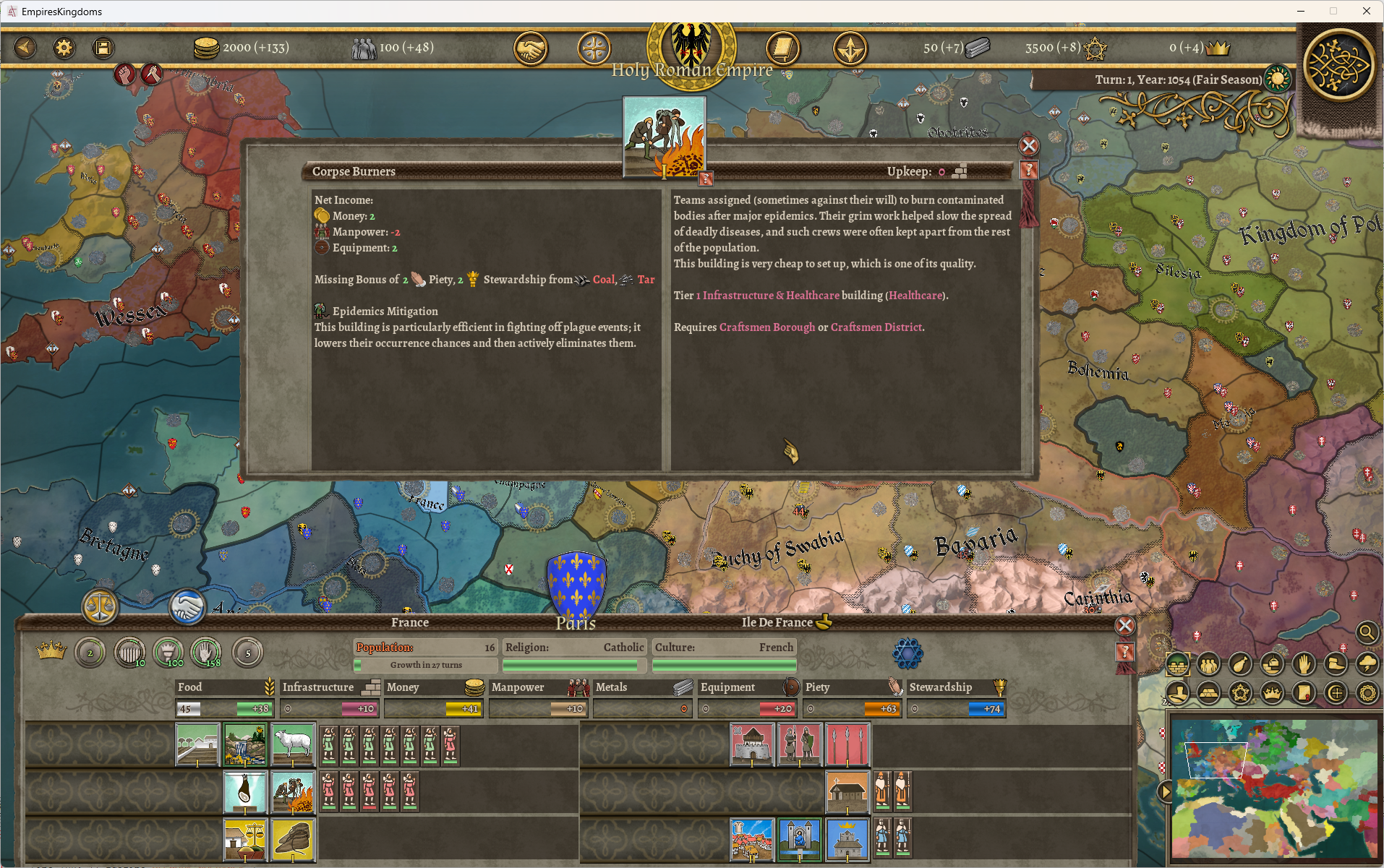 Mass Graves and Corpse Burners, providing additional means to combat epidemics alongside powerful structures such as the Christian lazaretto.