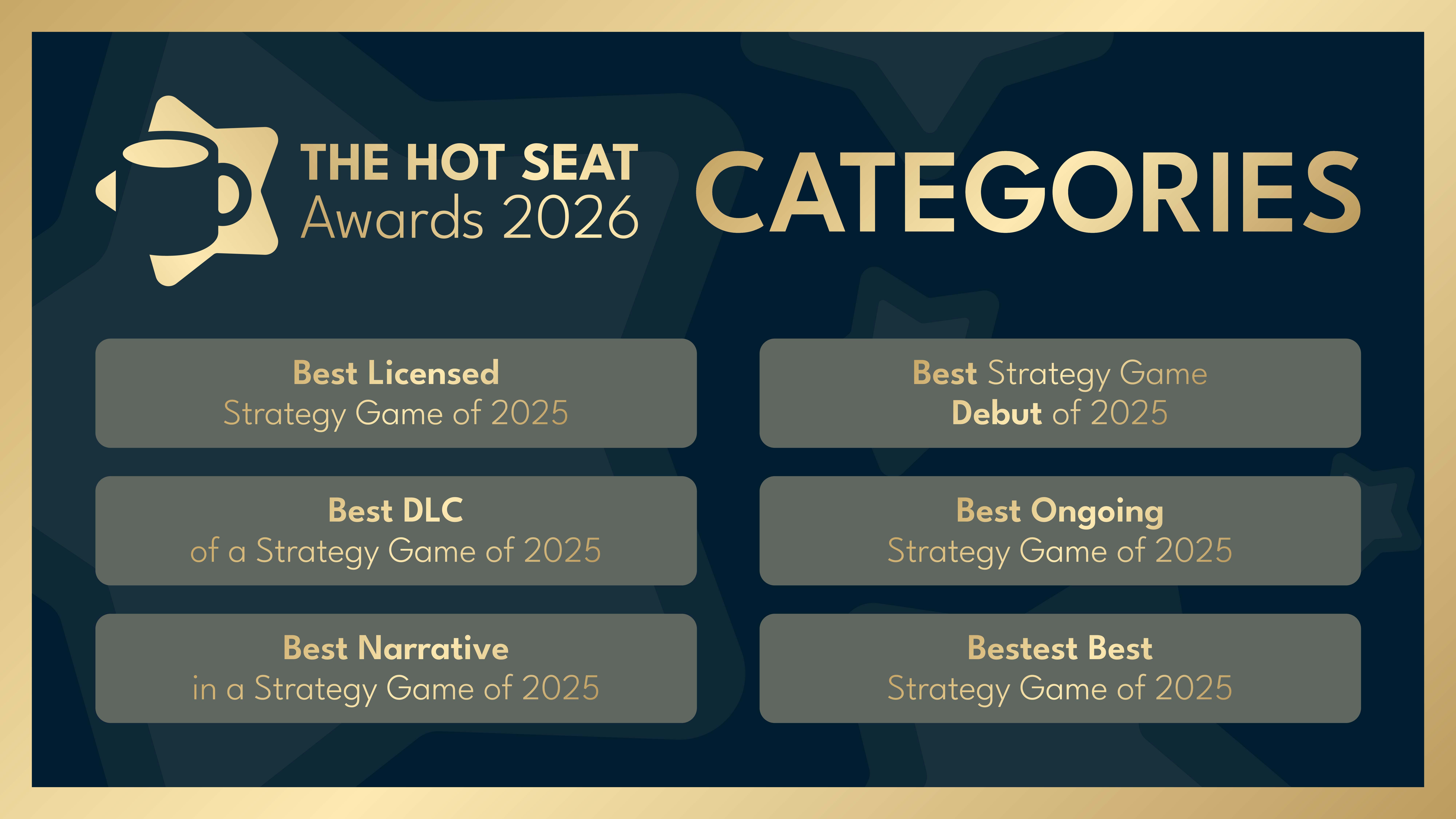 The Hot Seat Awards were introduced during the episode. These awards are a community-driven way to spotlight great strategy games.